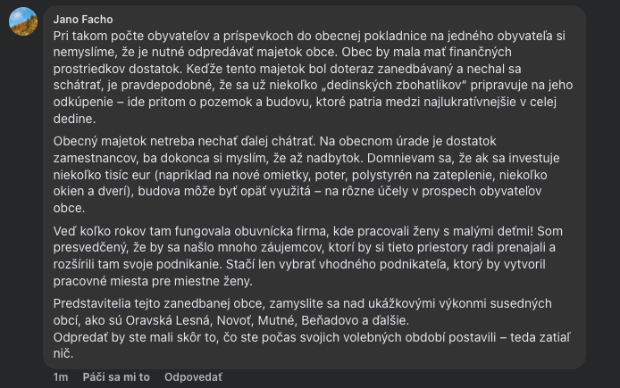 Obec pripravuje jej predaj ako „prebytočný majetok“.
