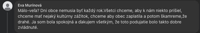 Pani Eva napísala, že chceme zážitok, obec to zaplatí – a potom sa šomre, že to bolo drahé.