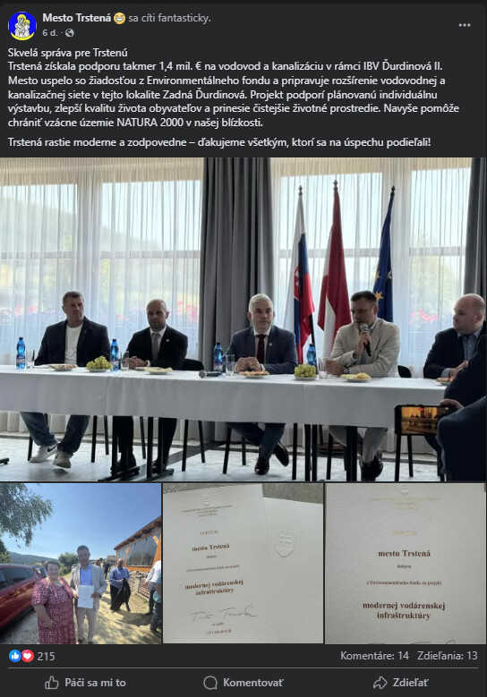 Pre porovnanie ešte ukážka ako informovalo napr. mesto Trstená, ktoré dostalo dotáciu tak isto ako Zákamenné a ďalšie obce na Orave. Za mňa má informácia na oficiálnej stránke orgánu verejnej správy (mesta, obce) vypadať takto ![]()